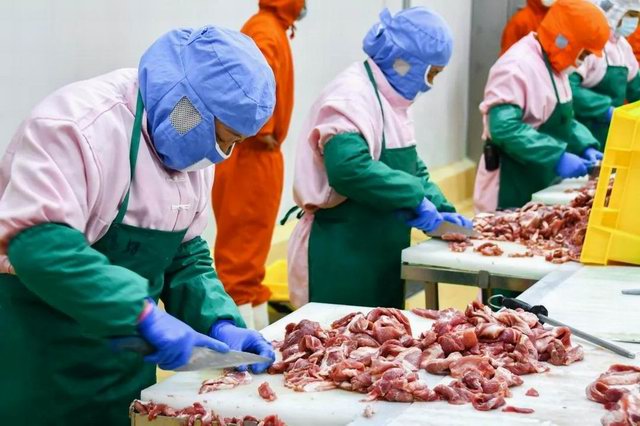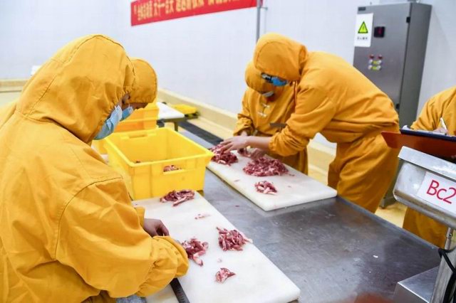 比賽分為兩個項目:小酥肉原料肉切肉比賽和小酥肉包裝比賽。公司屠宰車間、分割車間、調(diào)理品車間、副產(chǎn)車間和熟食車間共派出6支參賽隊伍。小酥肉原料肉切肉比賽每個隊伍時間限定20分鐘,在20分鐘內(nèi)根據(jù)所切肉條的重量和完成質(zhì)量評定名次。鍋圈小酥肉包裝比賽每個隊伍包裝300袋(約80kg)小酥肉,根據(jù)所用時間和包裝合格率評定。比賽開始之前,熟食廠經(jīng)理張沛宣布了比賽的規(guī)則,叮囑參賽選手在比賽中注意安全,隨后比賽拉開了帷幕。